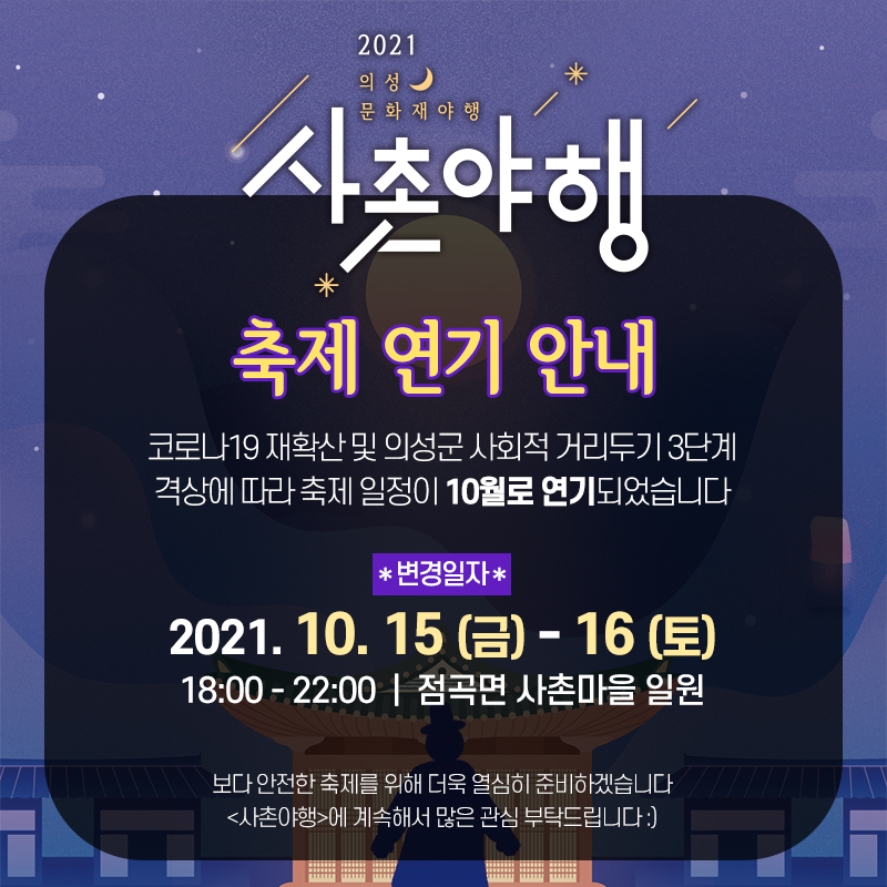 2021 사촌야행 | 10월 연기 안내
